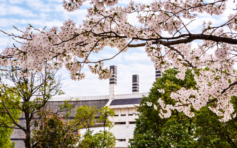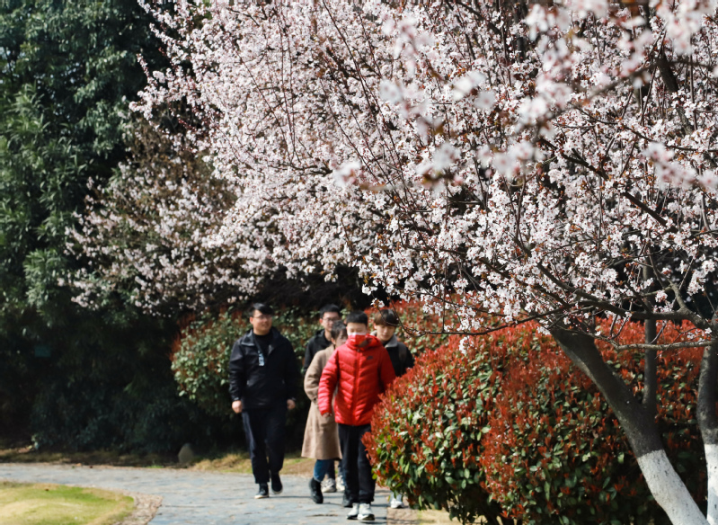 大道两旁绿树成荫,小径两边繁花飞舞。校园内,清雅的玉兰伴着娇艳的桃花,更有早樱的花瓣零星散落,空气中弥漫着阵阵芬芳,共同诉说着对春天的希望。