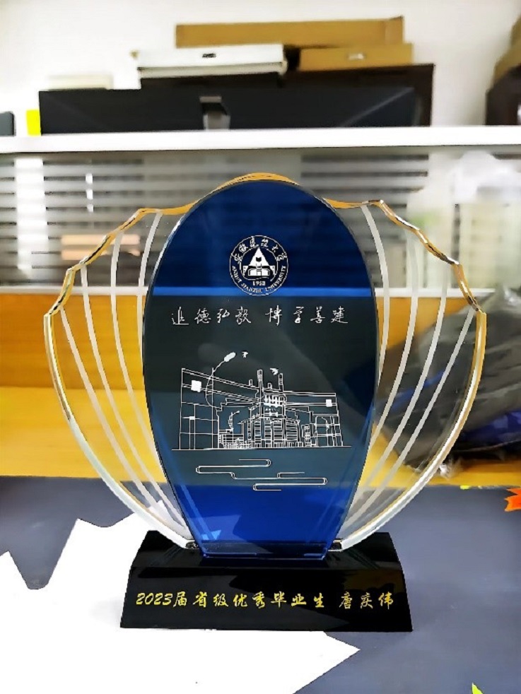 功夫不负有心人,唐庆伟的表现和成绩赢得了众多的荣誉,先后获得了安徽省优秀毕业生、安徽省优秀硕士论文、三好研究生等荣誉称号,并在毕业时以优异的成绩被合肥工业大学录取为2023级博士研究生, 未来还会在学术的道路上继续探索。