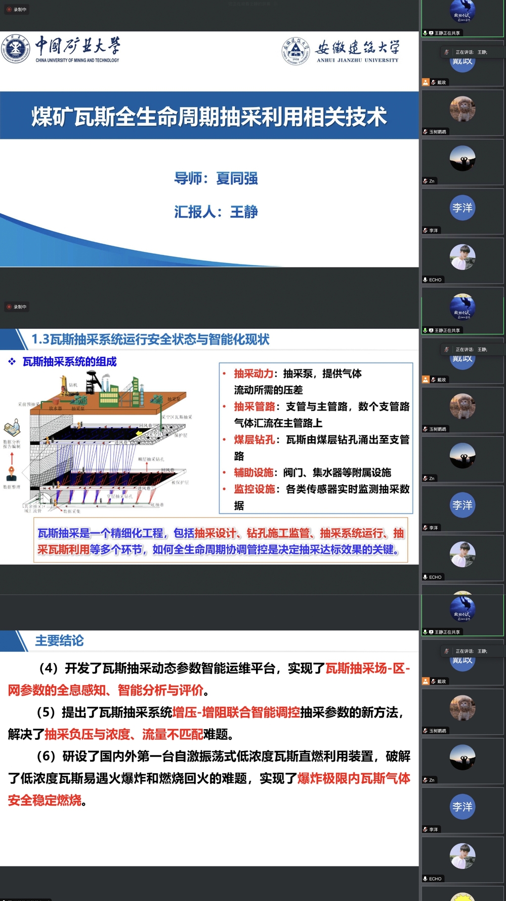 他们向参加分享会的研究生们深入分享了考博的心路历程与学术心得。李洋同学从目标院校、时间节点和考核内容三方面为我们分享了他的申博经历,并介绍了他的研究课题:轻质超高性能混凝土(LUHPC),同时和研子们分享了他充实的博士生活;王静同学首先分享了读博期间的一些心得感悟,之后为我们详细介绍了他的博士研究方向:煤矿瓦斯全生命周期抽采利用相关技术,并展示了在该领域取得的部分成果。
