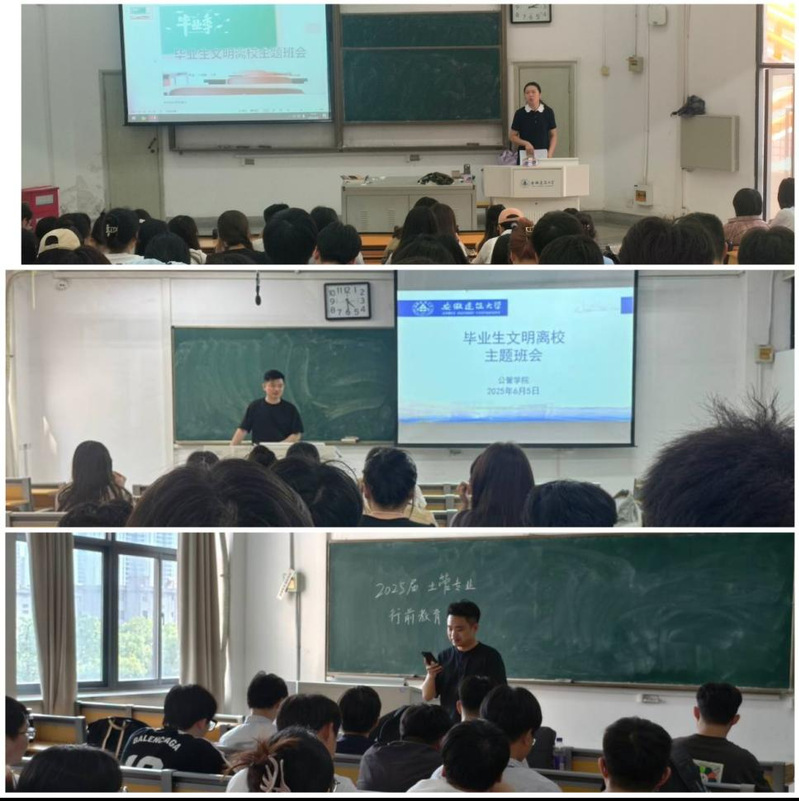 6月伊始,学院毕业班分别召开2025届“毕业生文明离校”主题班会,聚焦流程指引、情感教育与安全守护,为毕业生送上一堂安全护航课。班会上,毕业班辅导员详细讲解离校手续办理流程、档案转接注意事项等,为毕业生顺利离校扫清“流程盲区”;结合交通安全、人身财产安全、心理健康等案例,开展沉浸式安全教育,叮嘱毕业生将文明自律贯穿始终,站好大学“最后一班岗”。