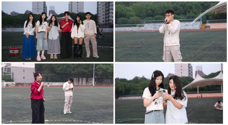 6月12日晚,金寨路校区的操场草坪在暮色中化作音乐舞台,多元艺术元素在此交织碰撞。现场既有明快节奏的现场演绎,也有灵动旋律的即兴创作。表演者用音符勾勒校园记忆的轮廓,从课堂的书声到操场的欢笑,从深夜的自习室到毕业前的走廊,都在旋律中化作温柔的注脚。同学们围坐成圈,荧光点点随节奏轻晃,离别的氛围在共鸣中升华为对未来的期许。这场不期而遇的音乐聚会,既是青春故事的终章,亦是新征程的序篇。
