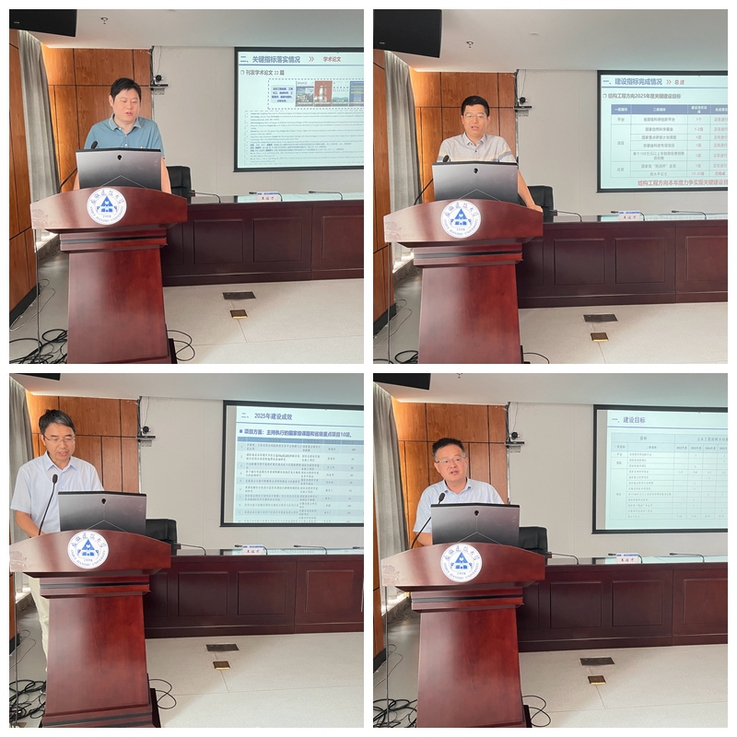 学科特区岩土工程、结构工程、市政工程和土木工程材料四个研究方向负责人依次进行汇报。分别从建设目标、2025年建设成效、建设存在问题以及下一阶段的重点工作等方面展开详细阐述。各研究方向在科研项目、人才培养、学术交流等方面取得一系列成果。同时,在建设过程中也面临科研平台需加强、标志性科研项目缺乏、高水平科研成果较少等问题,针对这些问题提出了下一阶段具有针对性的重点工作计划。
