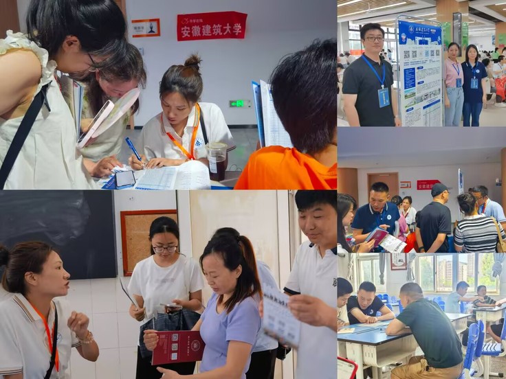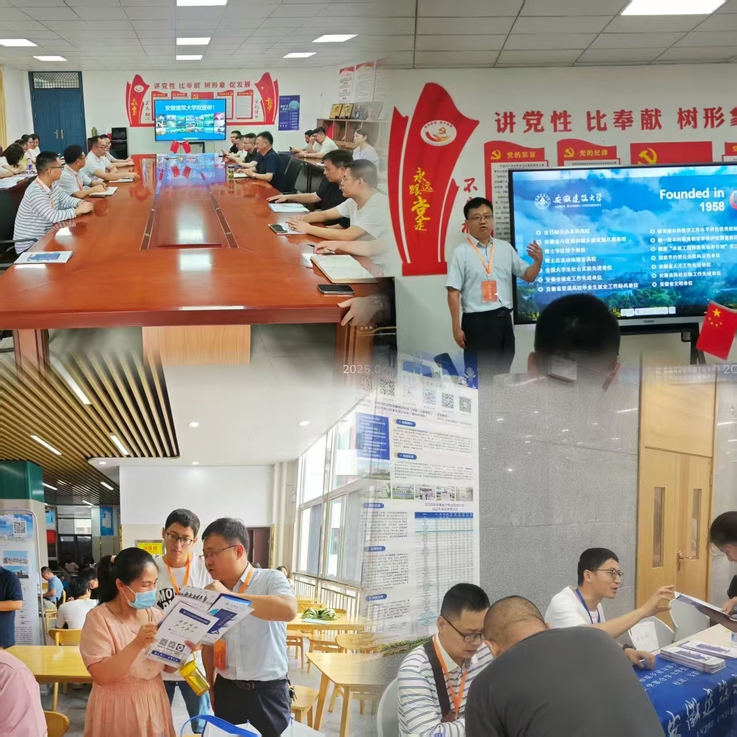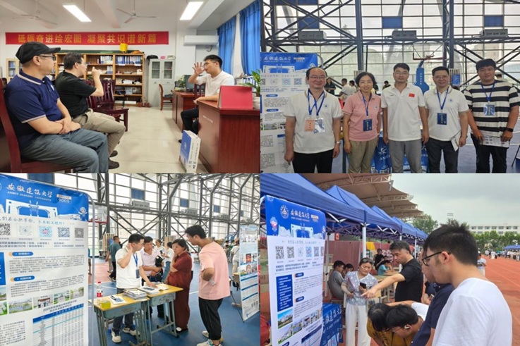 善事:多场域展开招宣活动。一方面,分布式开展大范围线下宣传。6月25日至28日期间,学院领导带领20余位教师赶赴阜阳市、滁州市、天长市等地的省内示范高中和优质生源中学,开展“专场招生宣讲”“优质生源地座谈”“现场咨询答疑”等线下招生宣传活动。通过专场招生宣讲会,介绍学校发展历程、学科优势、专业设置以及就业前景等内容,播放招宣视频,大幅提升了学生及家长对安建大的认知度、认可度、认同度。通过优质生源地座谈会,与阜阳二中、炳辉中学等校领导、高三班主任代表重点阐释安建大办学优势、招生政策与专业特色,并深入交流谋划未来合作,强化了相关中学与安建大的联系密度。通过设立招生咨询点,面对面深度交流学校及学院专业设置、特色优势、前沿培养体系以及广阔的就业与发展前景,受到学校领导老师、同学们和家长们的热烈欢迎。