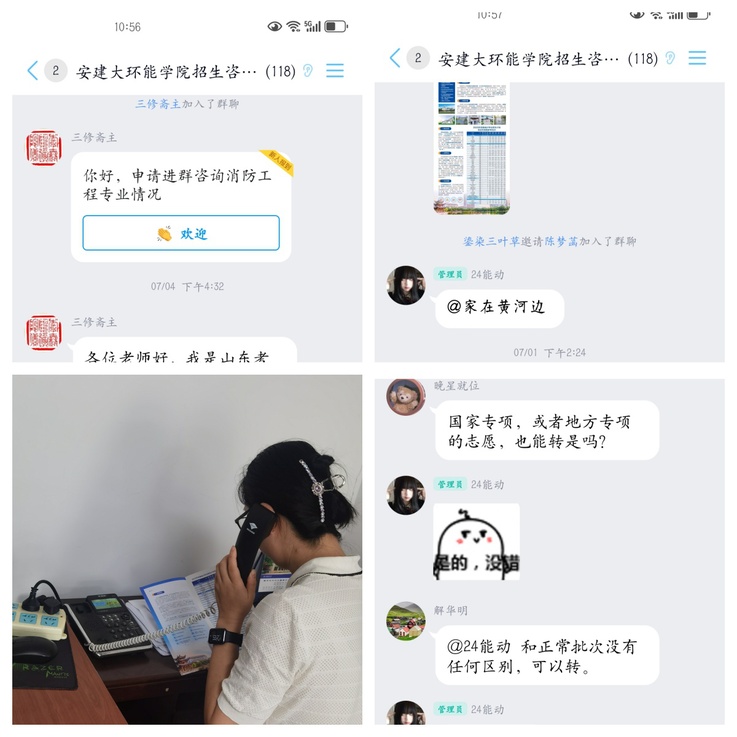 专机连线,深化互动沟通。学院专门公布了招生答疑专线电话,并开通了8 小时招生咨询热线,确保考生和家长的疑问能够得到 “即时答、精准答”。此外,学院还开通了 QQ 群线上咨询通道,安排专业教师和学生志愿者实时解答考生的疑问,保证了信息传递的 “零延迟”,让大家能够及时获取准确的招生信息。